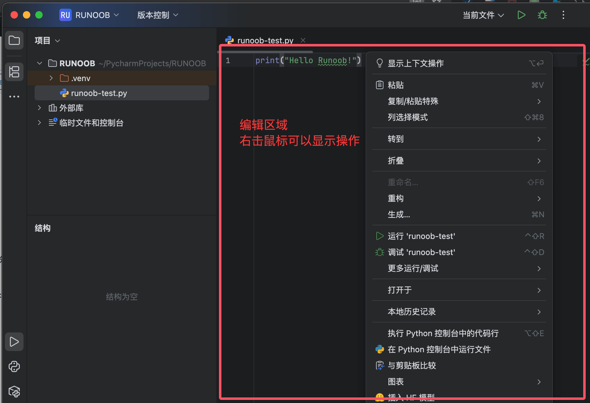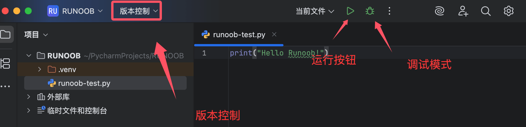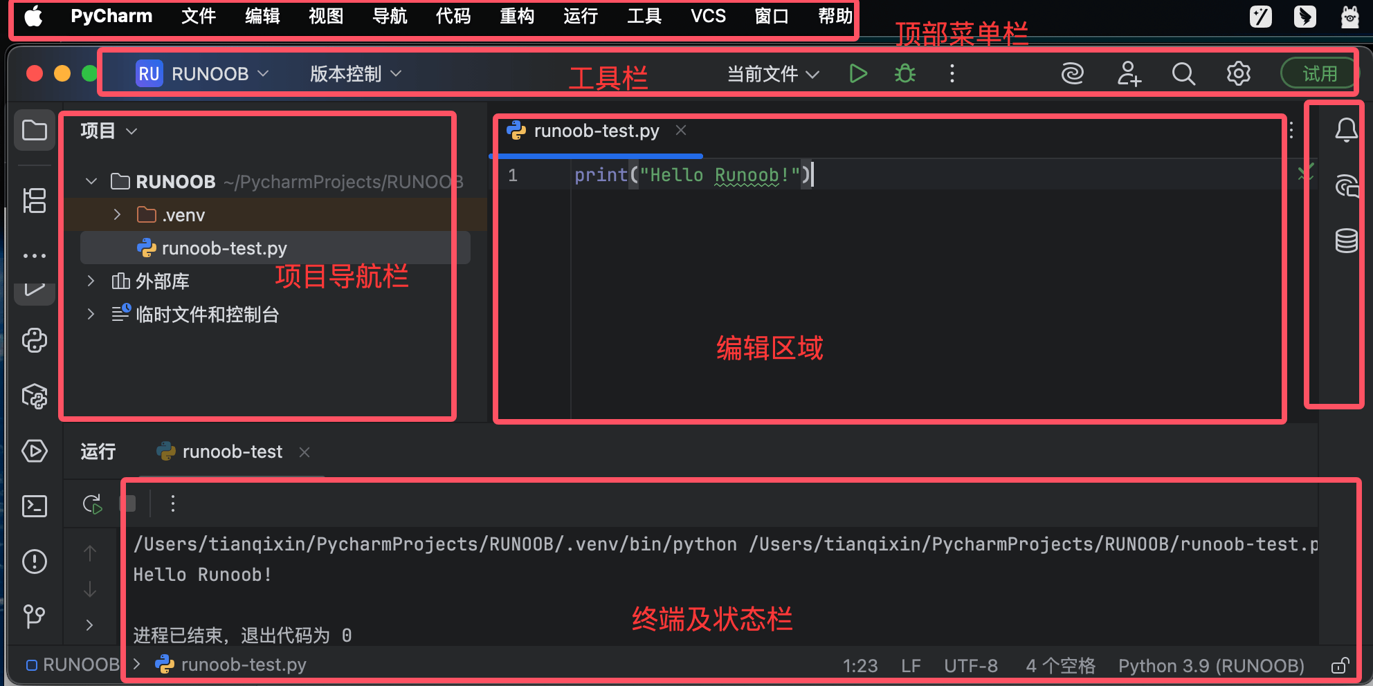 顶部菜单栏:文件(File)、编辑(Edit)、视图(View)、导航(Navigate)等