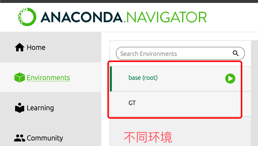 安装完后我们就可以进入 Anaconda 管理界面查看并安装不同的环境: