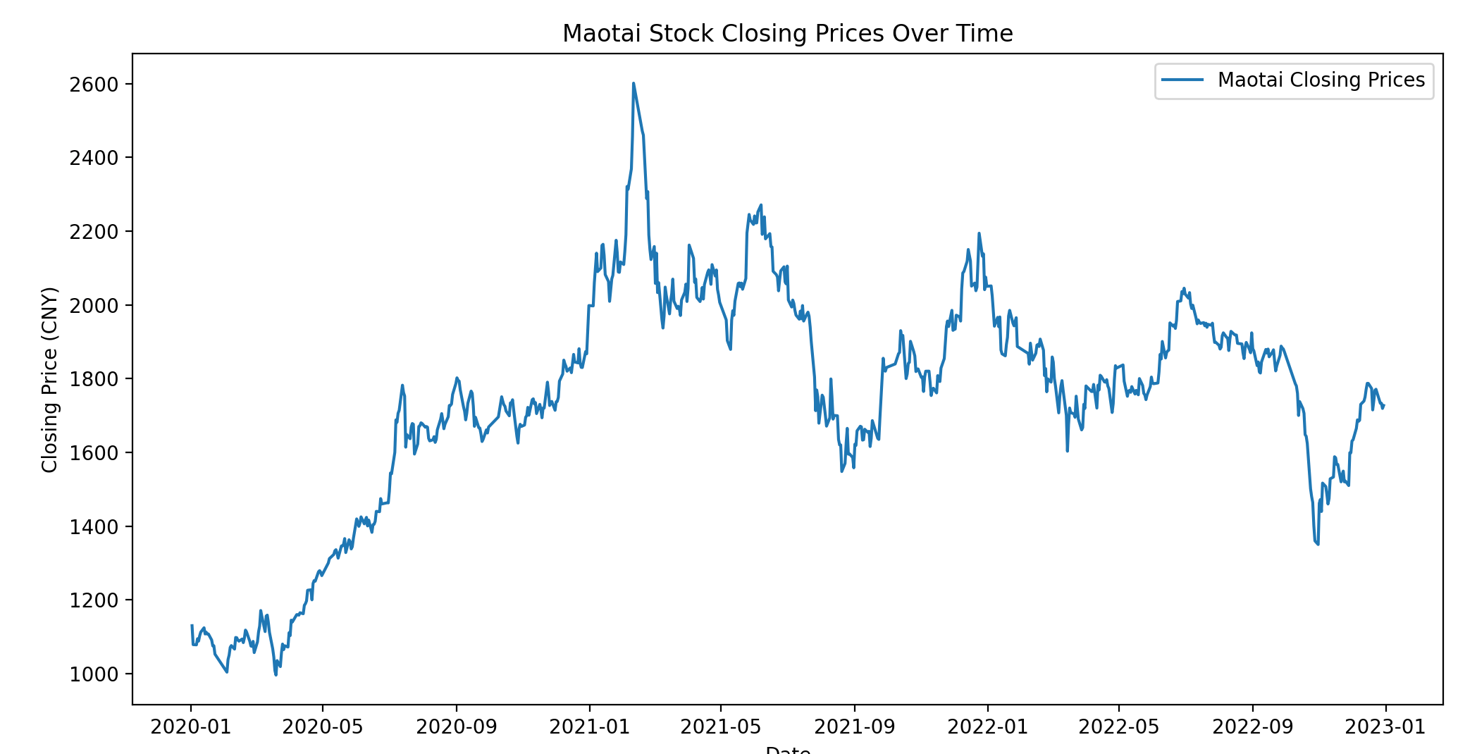maotai_data = yf.download("600519.SS", start="2020-01-01", end="2023-01-01")