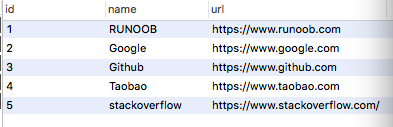 (1, 'RUNOOB', 'https://www.runoob.com')