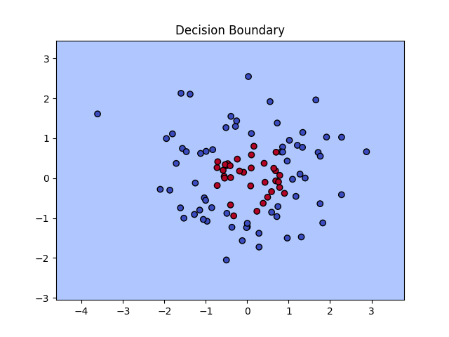 图中显示了原始数据点(红色和蓝色),以及模型学习到的分类边界。