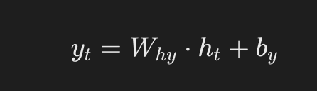 \[ y_t = W_{hy}h_t + b_y \]