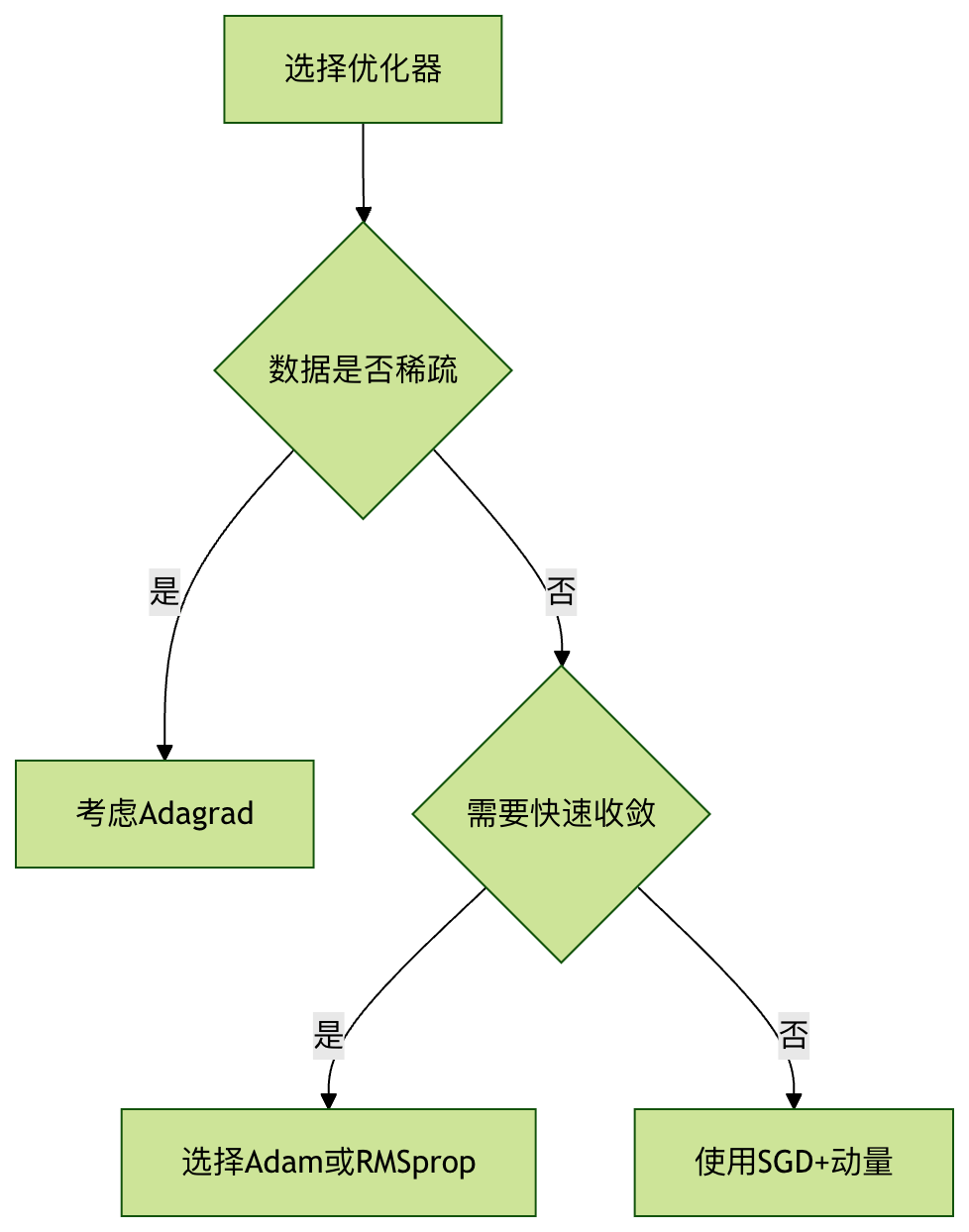 | Adagrad | 参数独立学习率 | 稀疏数据 |
