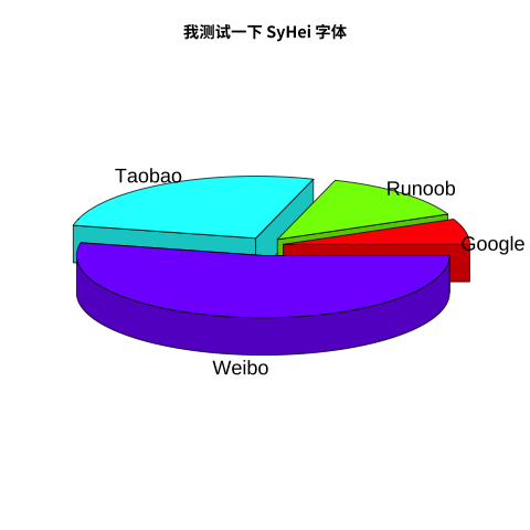 pie3D(info,labels = names,explode = 0.1, main = "我测试一下 SyHei 字体",family = "SyHei")