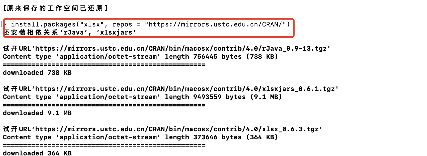 install.packages("xlsx", repos = "https://mirrors.ustc.edu.cn/CRAN/")