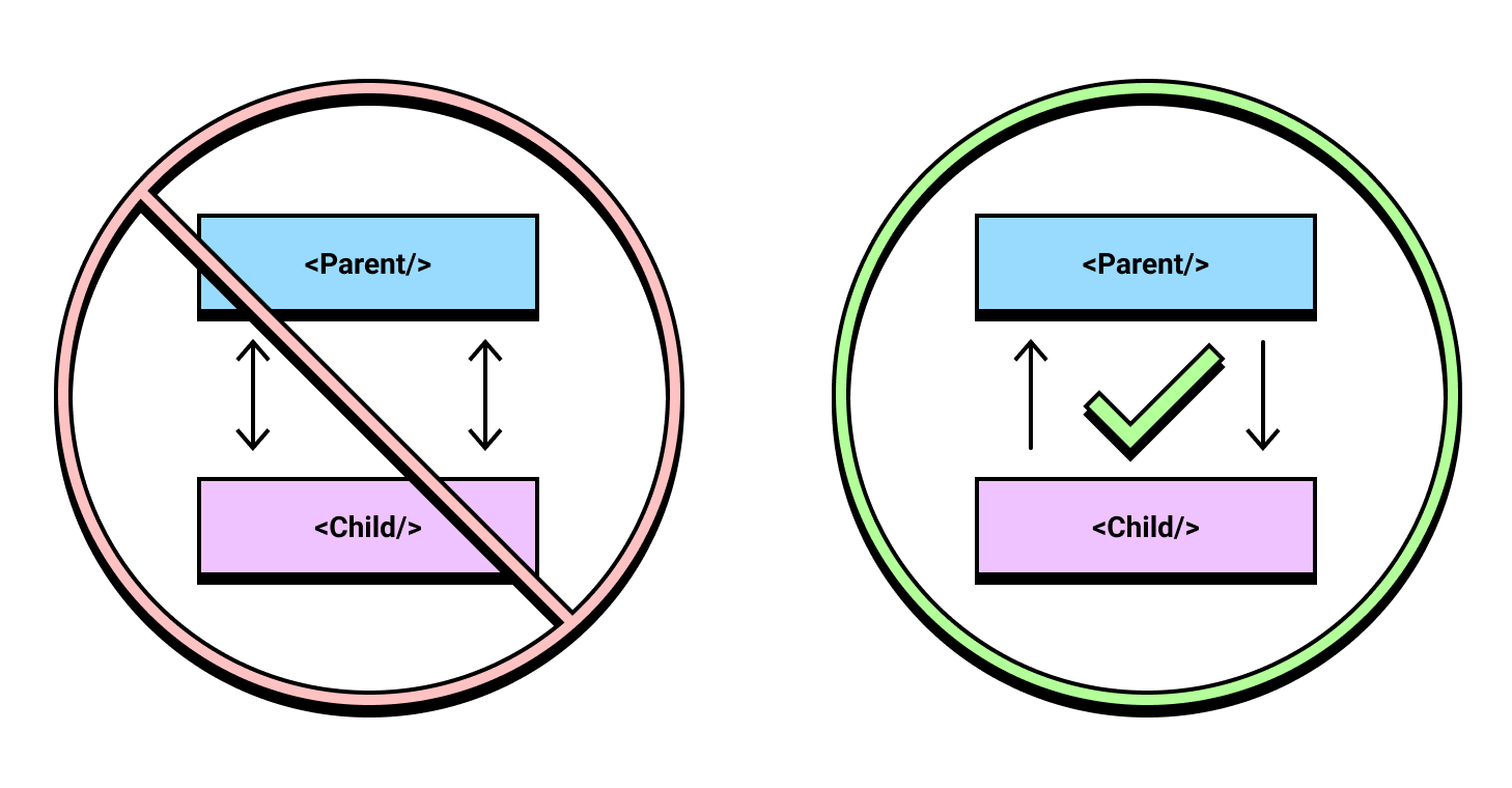 React 的数据是单向向下流的,Parent (父) → Child (子),Child 不能反向到 Parent:
