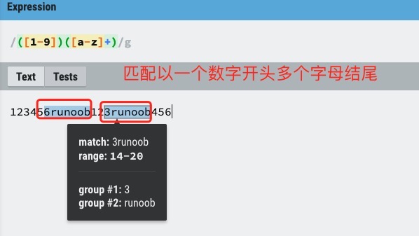 runoo+b,可以匹配 runoob、runooob、runoooooob 等,+ 号代表前面的字符必须至少出现一次(1次或多次)尝试一下 »。