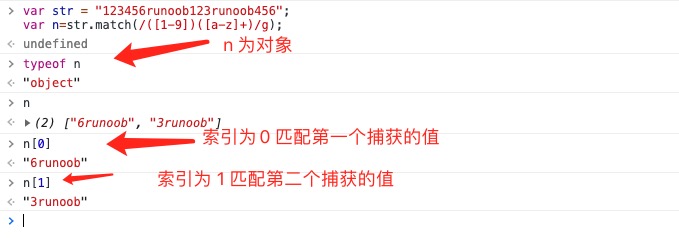第三行代码 str.match(patt1) 返回一个数组,实例中的数组包含 5 个元素,索引 0 对应的是整个字符串,索引 1 对应第一个匹配符(括号内),以此类推。