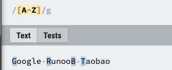 | [A-Z] | [A-Z] 表示一个区间,匹配所有大写字母,[a-z] 表示所有小写字母。