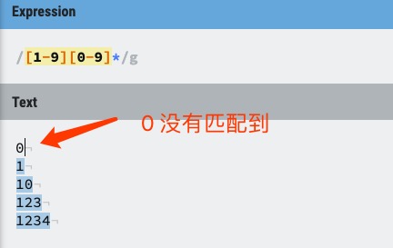 以下正则表达式匹配一个正整数,[1-9]设置第一个数字不是 0,[0-9]* 表示任意多个数字: