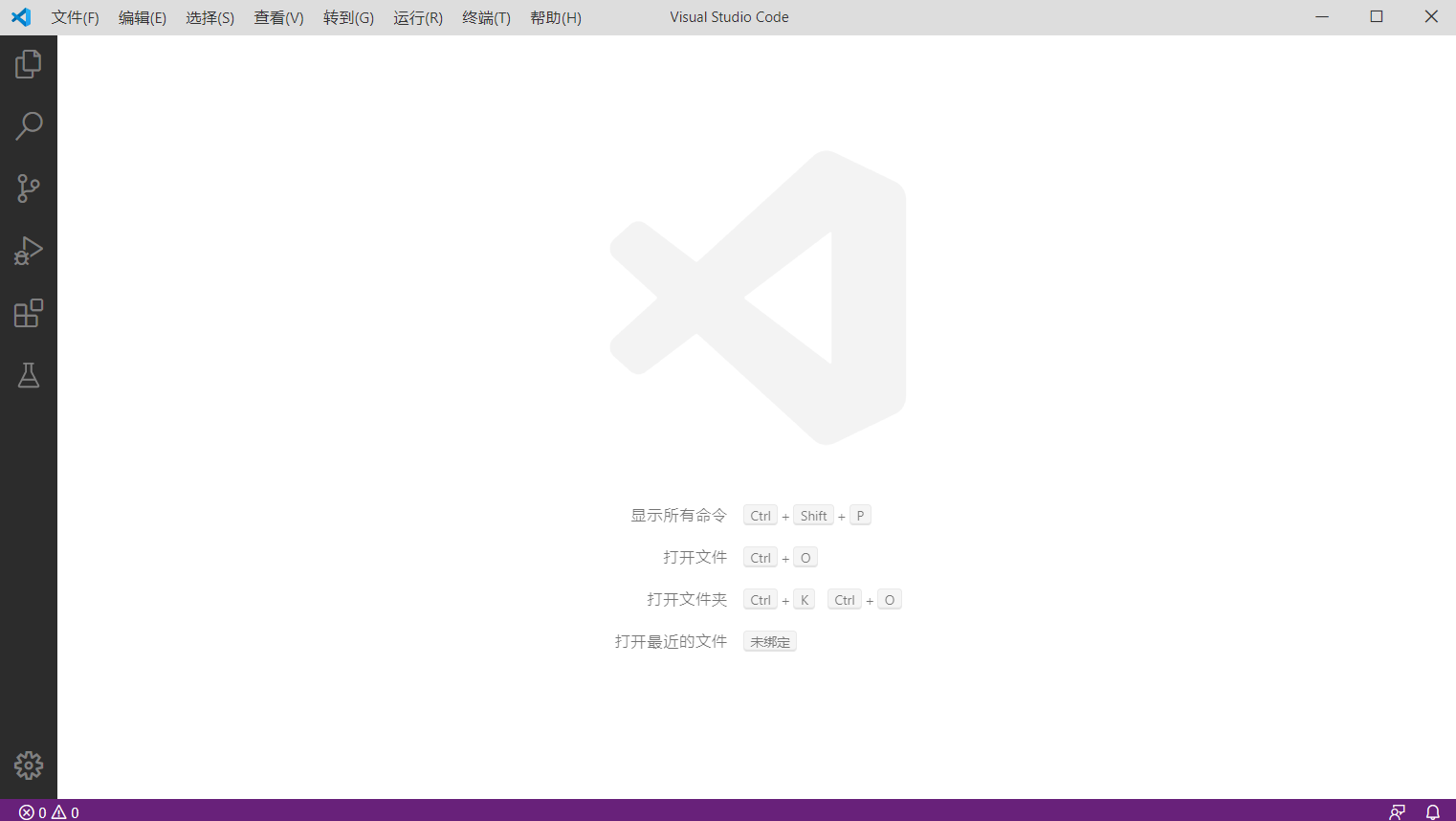 安装完 Visual Studio Code (下文简称 VSCode)之后运行 VSCode。