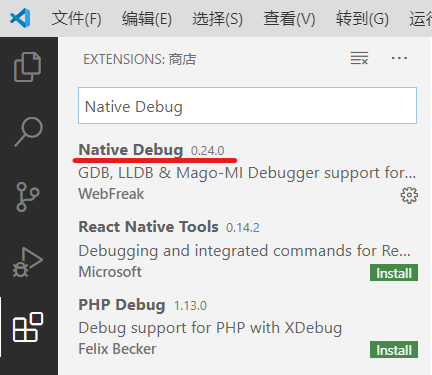 用同样的方法再安装 rust-analyzer 和 Native Debug 两个扩展。