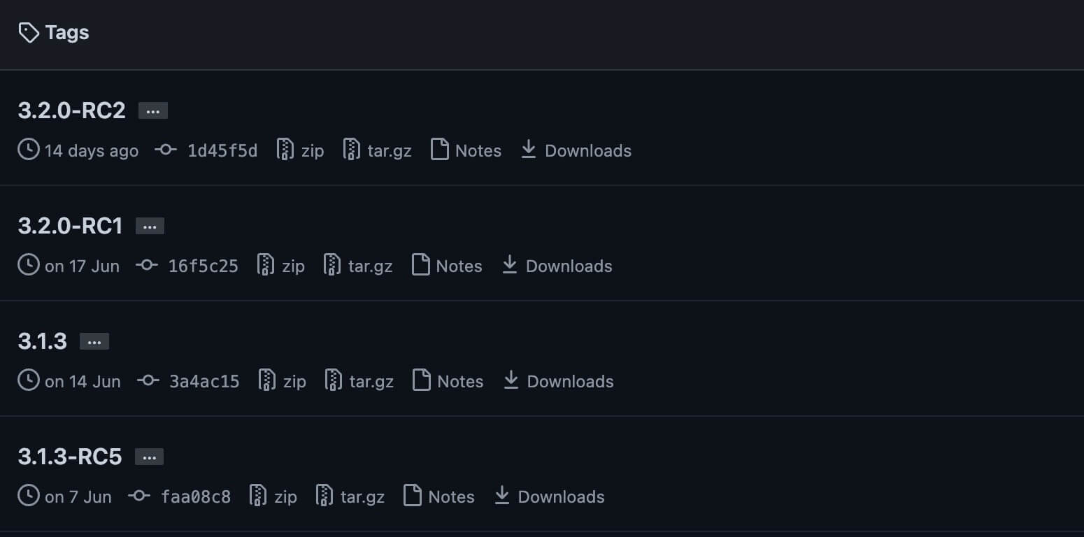 我们可以从 Github 地址 https://github.com/lampepfl/dotty/tags 下载 Scala 二进制包,本教程我们将下载 2.11.7版本,如下图所示: