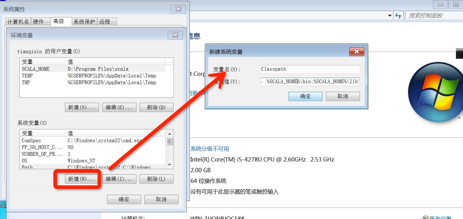 3.设置 Classpath 变量:"变量值":.;%SCALA_HOME%\bin;即可