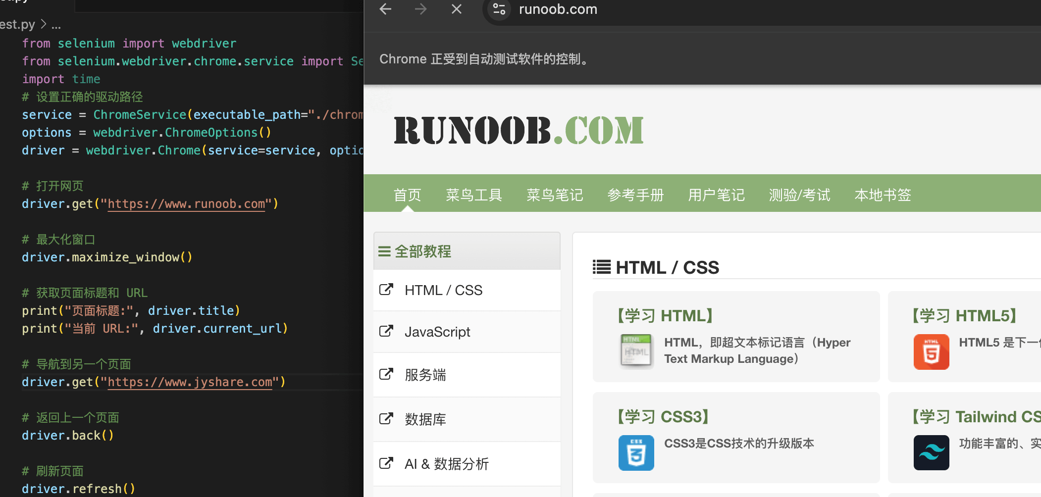 页面标题: 菜鸟教程 - 学的不仅是技术,更是梦想! 当前 URL: https://www.runoob.com/