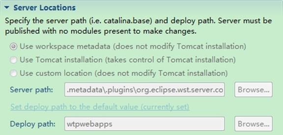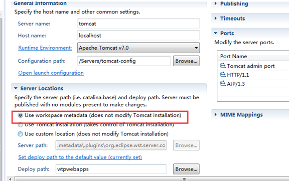 默认选项为:Use workspace metadata(dose not modify Tomcat installation),