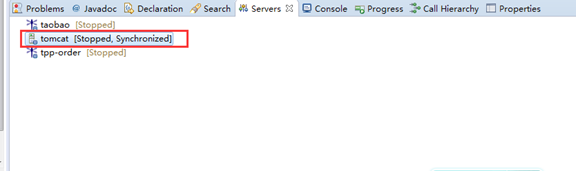 在Eclipse菜单栏中选择window — show view — server 可以看到服务的面板,服务面板中可看到已配置的Tomcat以及Tomcat下的项目