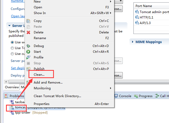 先把tomcat下的所有项目删除,然后右击,选择clean。再次双击tomcat进入设置界面,此时可看到Service Locations下各个选项已处于可编辑状态了。