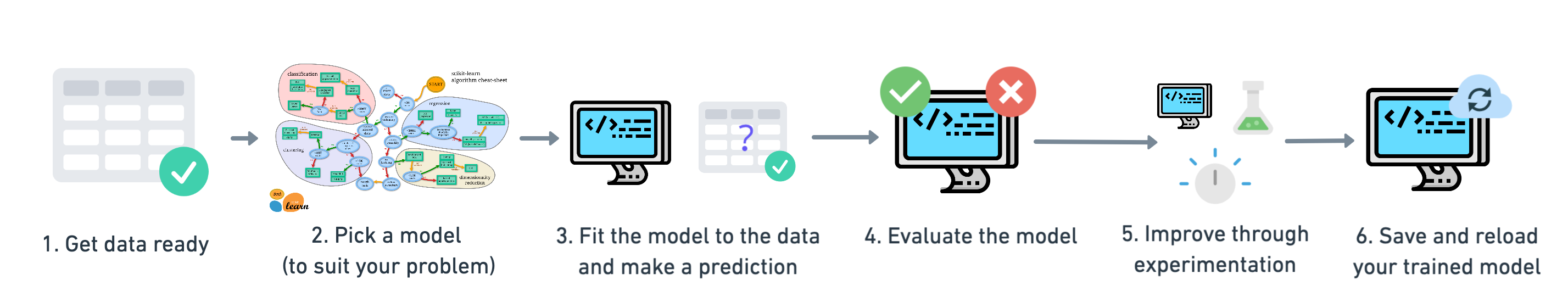 在 Sklearn 中,机器学习的流程遵循一定的模式:数据加载、数据预处理、训练模型、评估模型 和 调优模型。