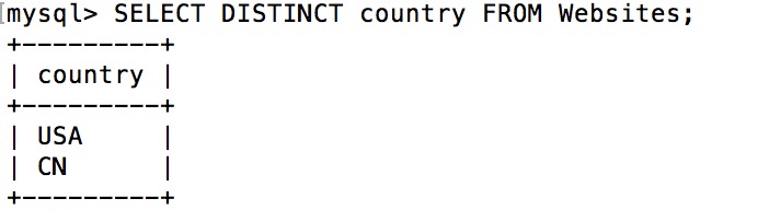 在表中,一个列可能会包含多个重复值,有时您也许希望仅仅列出不同(distinct)的值。