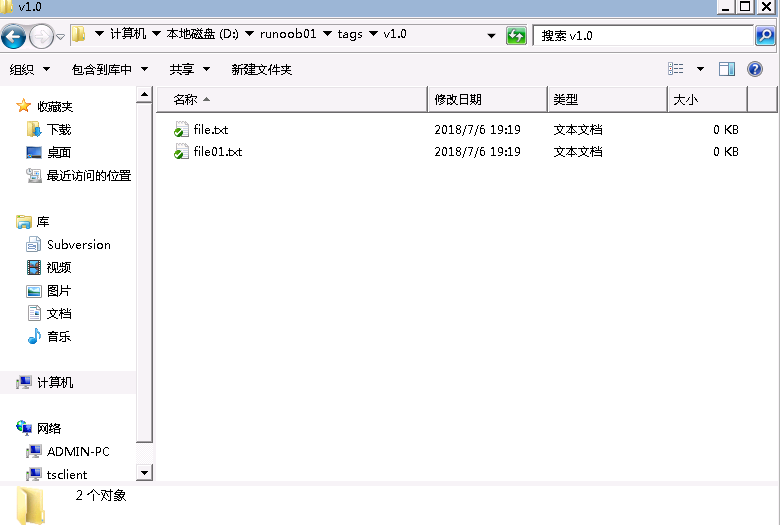 成功的话,您就在对应的 Tag 目录下面建立了一个 v1.0 的目录。当然,如果您这时到 Tag 的目录下面去,会看不到这个目录,您需要在 Tag 目录下面 update 一下,才能看到它。