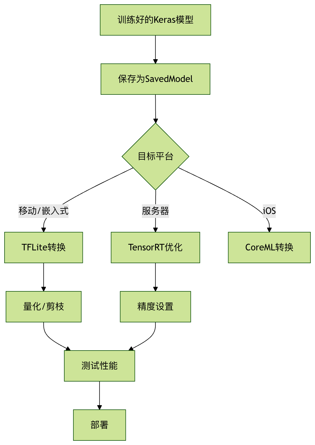 - 部署需求:训练好的模型需要适配不同平台(移动端、嵌入式设备、服务器等)