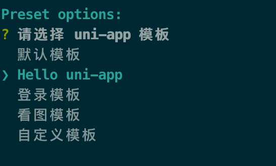 此时,会提示选择项目模板(使用 Vue3/Vite 版不会提示,目前只支持创建默认模板),初次体验建议选择 hello uni-app 项目模板,如下所示: