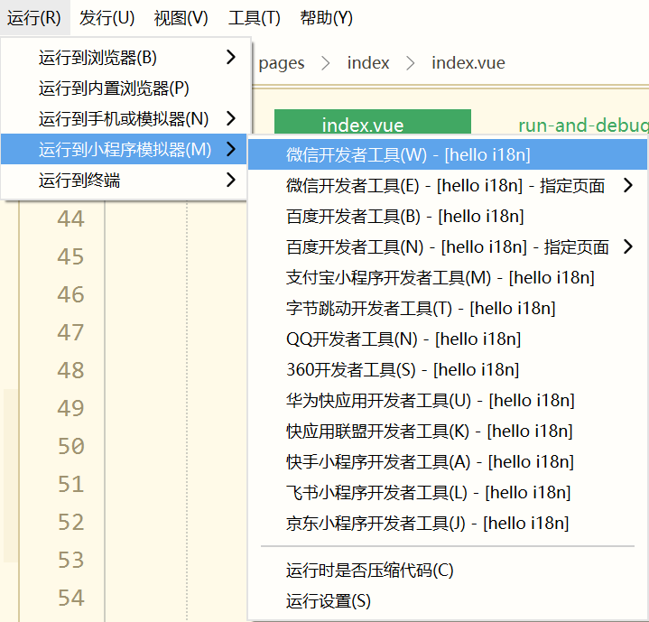 在微信开发者工具里运行:进入 项目,点击工具栏的运行 -> 运行到小程序模拟器 -> 微信开发者工具,即可在微信开发者工具里面体验 uni-app。