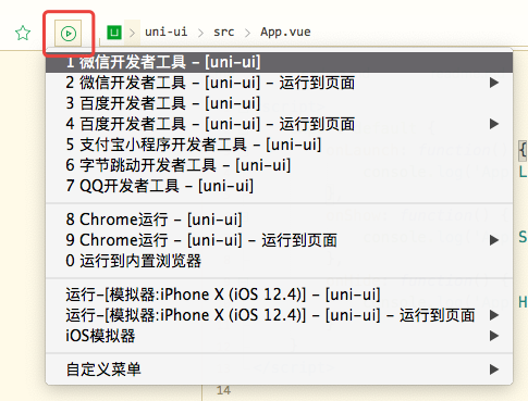 HBuilderX 还提供了快捷运行菜单,可以按数字快速选择要运行的设备: