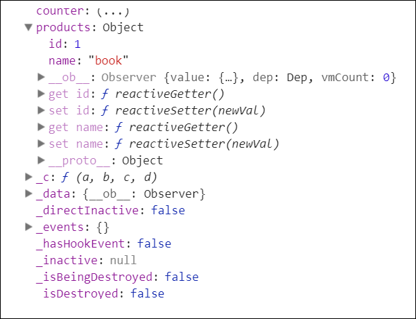 如果我们想给 myproduct 数组添加一个或多个属性,我们可以在 Vue 实例创建后使用以下代码: