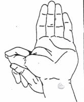 - 手朝天,掌心朝自己,然后用另一只手轻轻地朝下掰拇指。