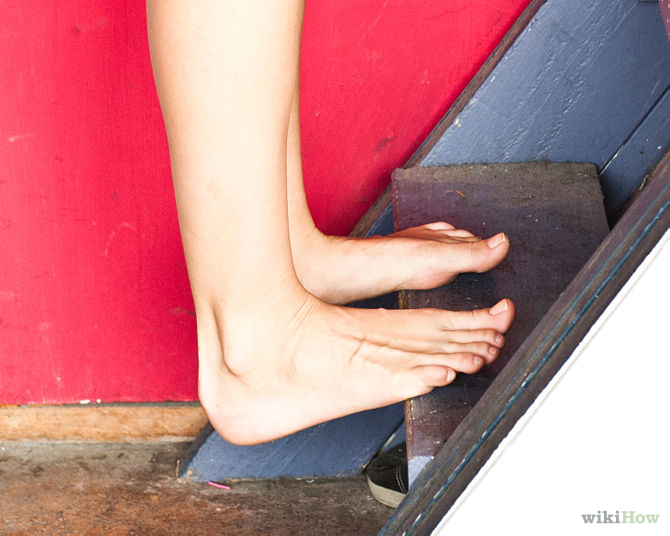 - 双脚踩在楼梯上,脚后跟腾空,脚趾着力。