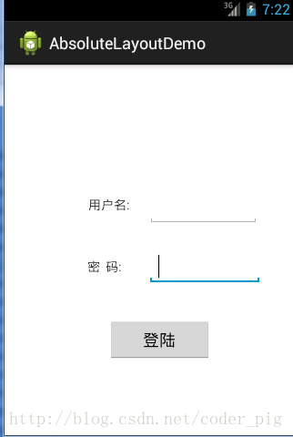 一个简单的登录界面,都是直接在ADT上拖拉出来的界面,代码就不贴了: