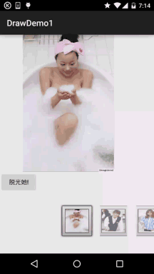 好的,本节写了关于绘图的两个小例子,还是蛮有趣的,相信你发下了,擦美女衣服那里, 消除的时候是方块的,不那么完美是吧,没事,下节我们学多个PorterDuff这个东西,我们 再来写多个例子,相比起这个代码就简单很多了,另外,时间关系,代码并没有去优化 或者整理,可以根据自己需求进行修改~好的,就说这么多,祝大家周末愉快~