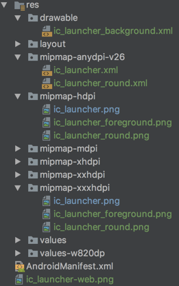 看到这里你可能会黑人问号??? 这个mipmap-anydpi-v26文件夹是什么鬼? 还有为什么每个mipmap文件夹都多了iclauncherforeground 和 iclanucherround