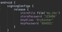 另一种是gradle命令行构建的,也很简单,图形化的可以看官方 文档,我这里直接贴代码,一般的话签名文件是不会丢到项目里 的,我这里因为是开源的,所以把my.jks也丢项目里了,然后 修改下build.gradle,依次是签名信息