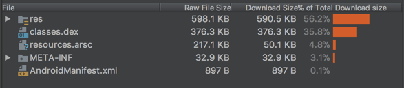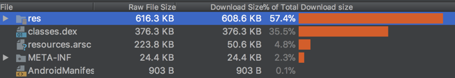 Android Studio 自带的 APK Analyzer,可以对我们的APK做一个定量分析: