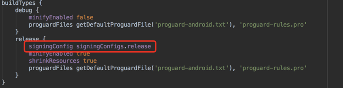 签名生成以后,就是使用签名打包了,打包方式有两种: 一种是手动打包,另一种是通过gradle构建自动打包