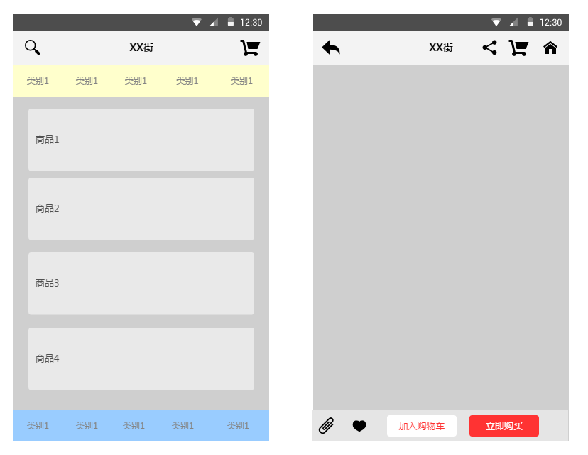 嘿嘿,市面上很多APP都是这种样子的,而这个可以用我们学到的Fragment来实现: 可能gif动画看不清,笔者用界面原型工具画个大概吧: