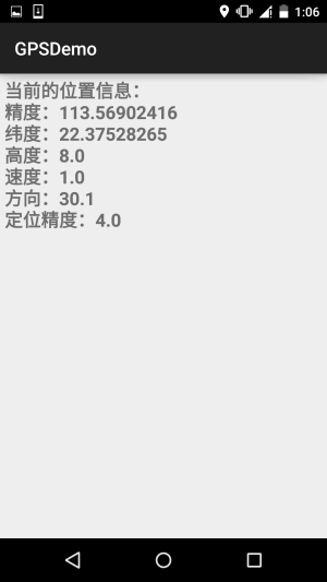 好的,本节给大家介绍了Android中GPS定位的一些基本用法,非常简单,内容部分参考的 李刚老师的《Android疯狂讲义》,只是对例子进行了一些修改以及进行了可用性的测试! 本节就到这里,谢谢~