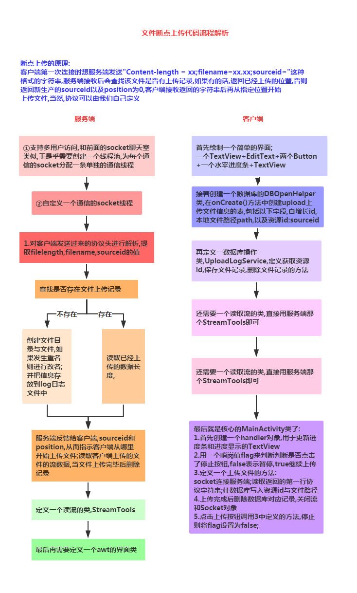 上节中我们给大家接触了Socket的一些基本概念以及使用方法,然后写了一个小猪简易聊天室的 Demo,相信大家对Socket有了初步的掌握,本节我们来学习下使用Socket来实现大文件的断点续传! 这里讲解的是别人写好的一个Socket上传大文件的例子,不要求我们自己可以写出来,需要的时候会用 就好!