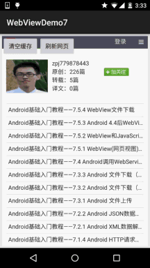 下面我们就来为WebView开启缓存功能,先来看下实现的效果图: