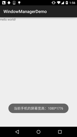 但是有些情况下,前面这三者可能满足不了我们的需求,比如我们仅仅是一个简单的显示 用Activity显得有点多余了,而Dialog又需要Context对象,Toast又不可以点击... 对于以上的情况我们可以利用WindowManager这个东东添加View到屏幕上, 或者从屏幕上移除View!他就是管理Android窗口机制的一个接口,显示View的最底层!