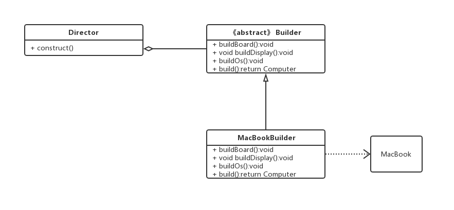 - (3)MacbookBuilder 具体的Builder类,具体的创建对象的类。