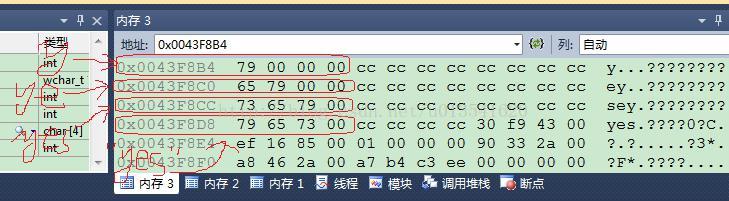 实验方式很简单,分别查看 "yes"/'yes'/'ye'/'y' 四种字符在内存中的存储形式,代码如下:int _tmain(int argc, _TCHAR* argv[])