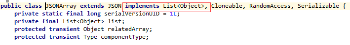 同样我们可以把 JSONArray 当做一个 List<Object>,可以把 JSONArray 看成 JSONObject 对象的一个集合。