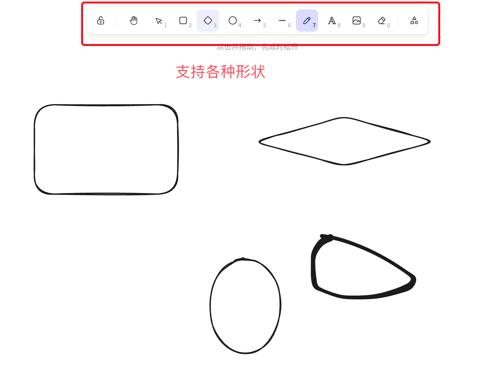 手绘风格:excalidraw 的绘图风格是手绘图形。
