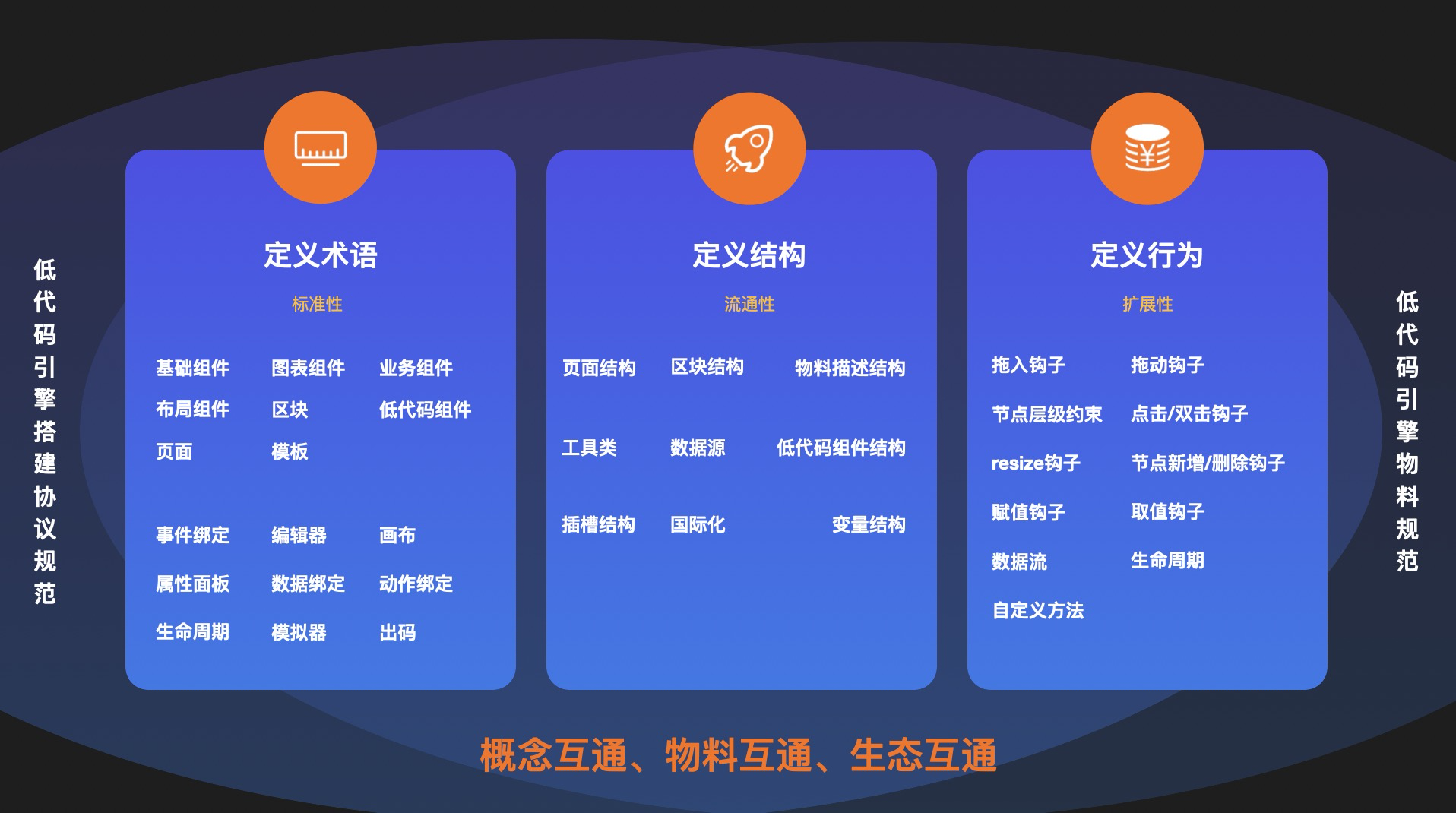 面向扩展设计的内核引擎: 企业级低代码平台的内核引擎奉行最小内核、最强生态的设计理念。