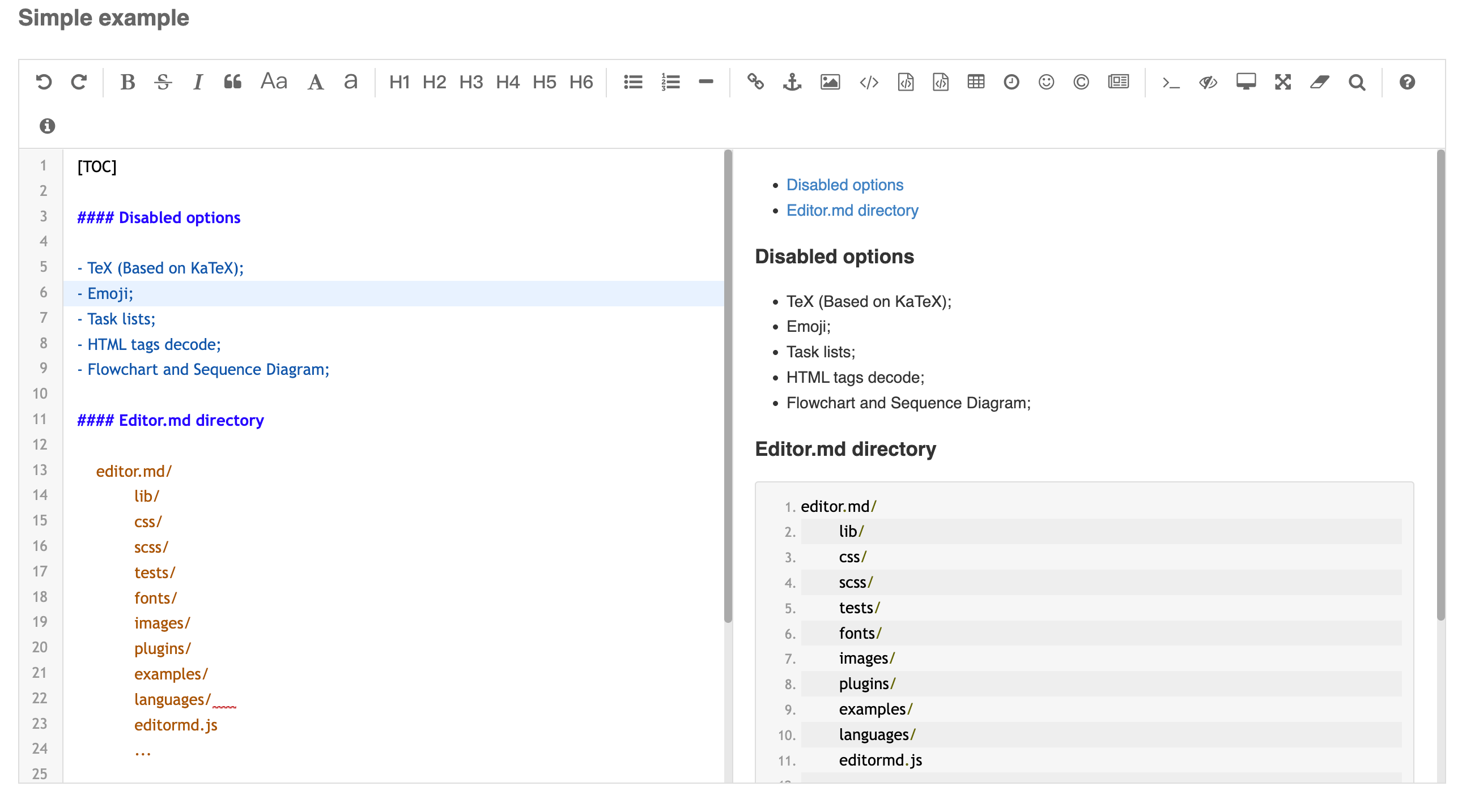 丰富的插件支持:Editor.md 支持多种插件,如图片上传、表情符号、代码高亮等,极大地扩展了编辑器的功能。