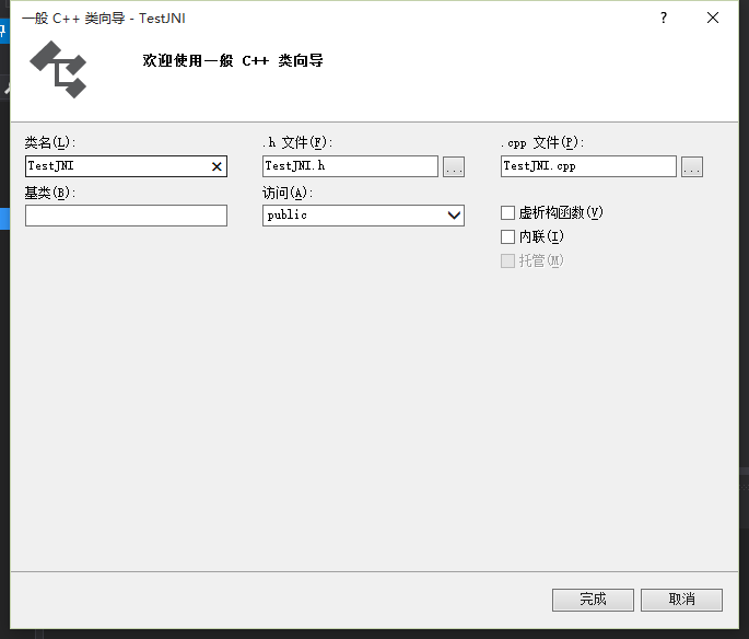 8.输入类名,点击完成。(C++类)